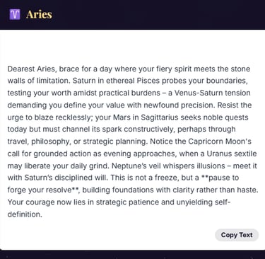 Daily horoscopes for your feed. Long-form chart reports for your digital shop.